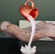 Het set bestaat uit een leistenen plateau met daarop een wit vaasje met bloemen , een zwevend kopje koffie ππΌen een acryl Mini moment met daarop een mooie teks!
