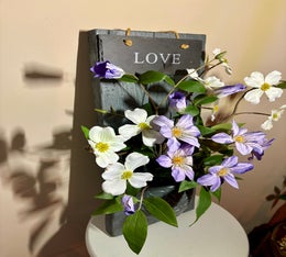 Gemaakt op steigerhout en voorzien van prachtige kunstbloemen die het hele jaar door stralen.
