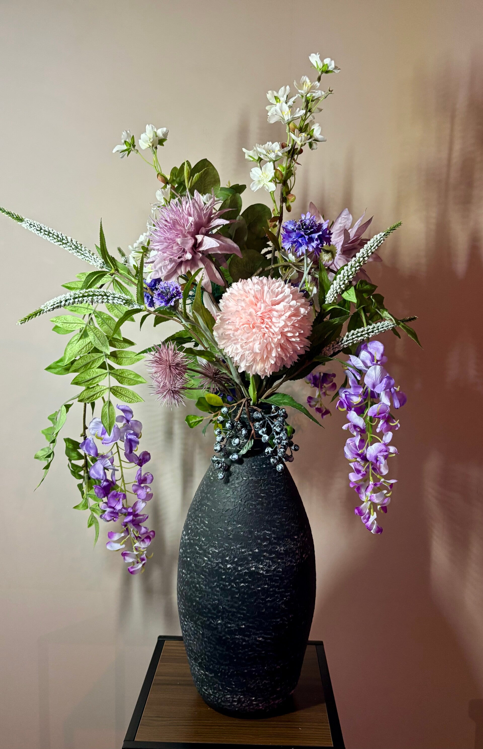 ๐ธ Boeket Berry Blush heeft een combinatie van paarse , witte en zacht roze bloemen rondom!