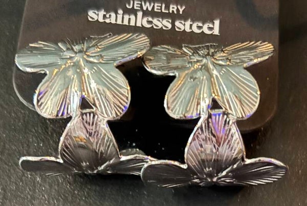 Deze grote halve oorringen zijn zilverkleurig met een dubbele bloem.