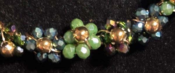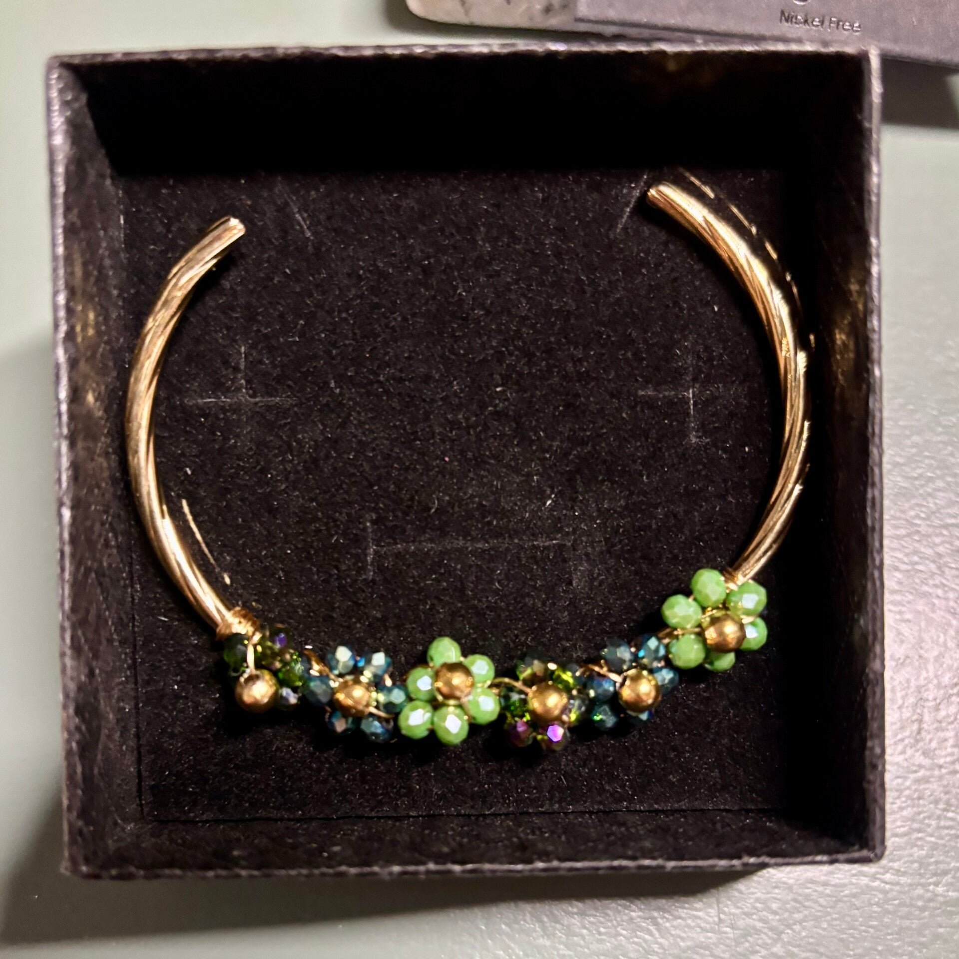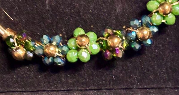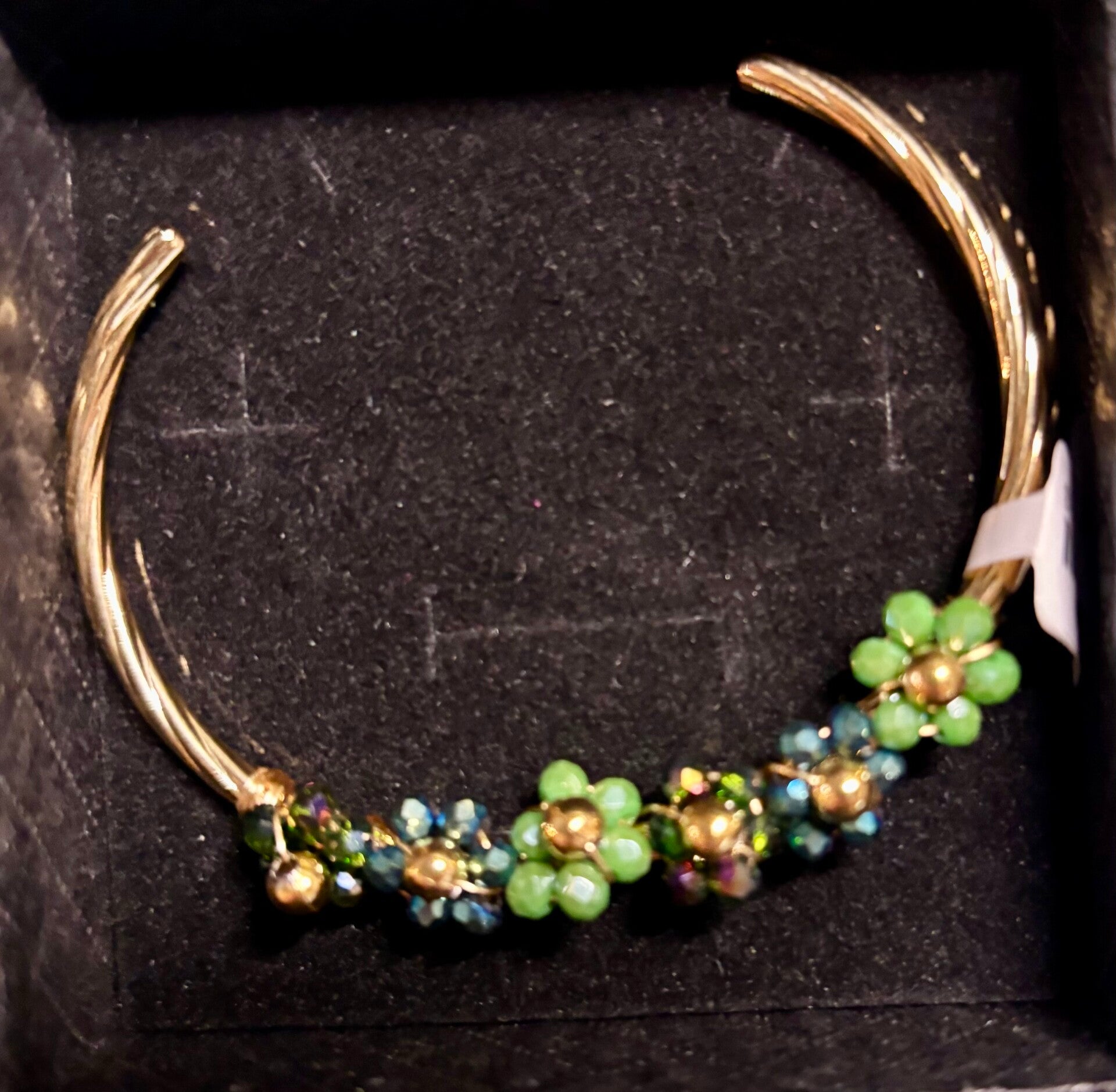 De armband heeft 6 bloemetjes in groen tinten met een leuke sparkle.