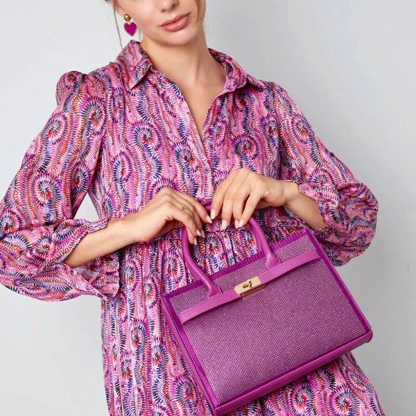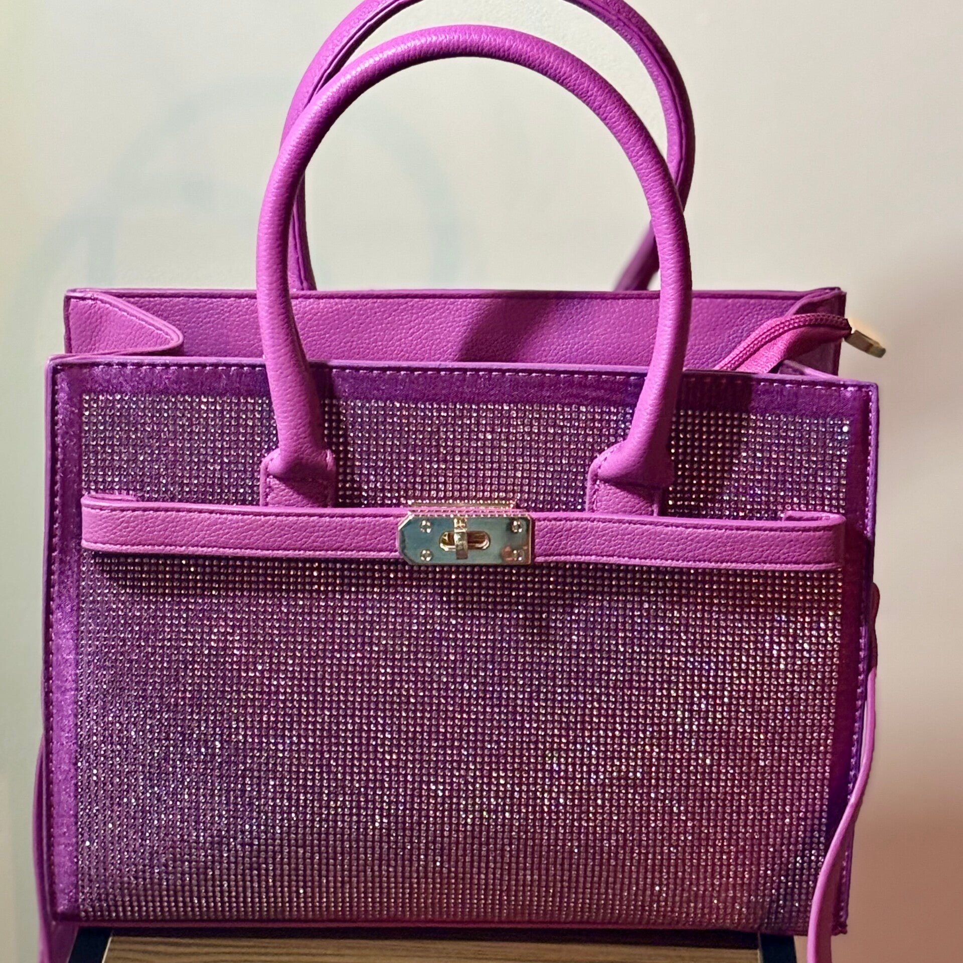Hoe geweldig is deze handtas met strass en slot riempje als leuk detail! Een echte must have voor de herfst en winter. de tas is van polyester. inclusief afneembare lange schouderband.
