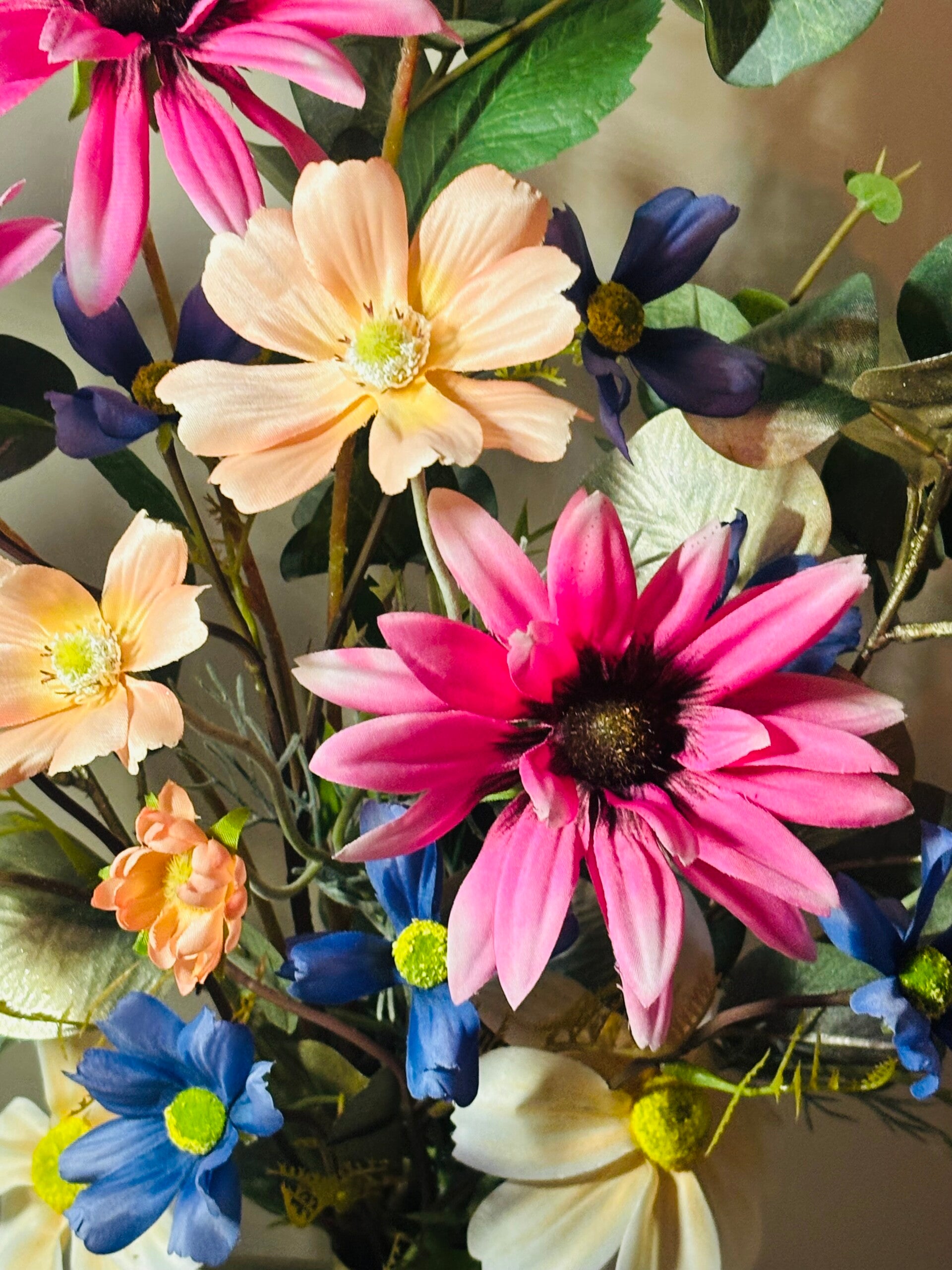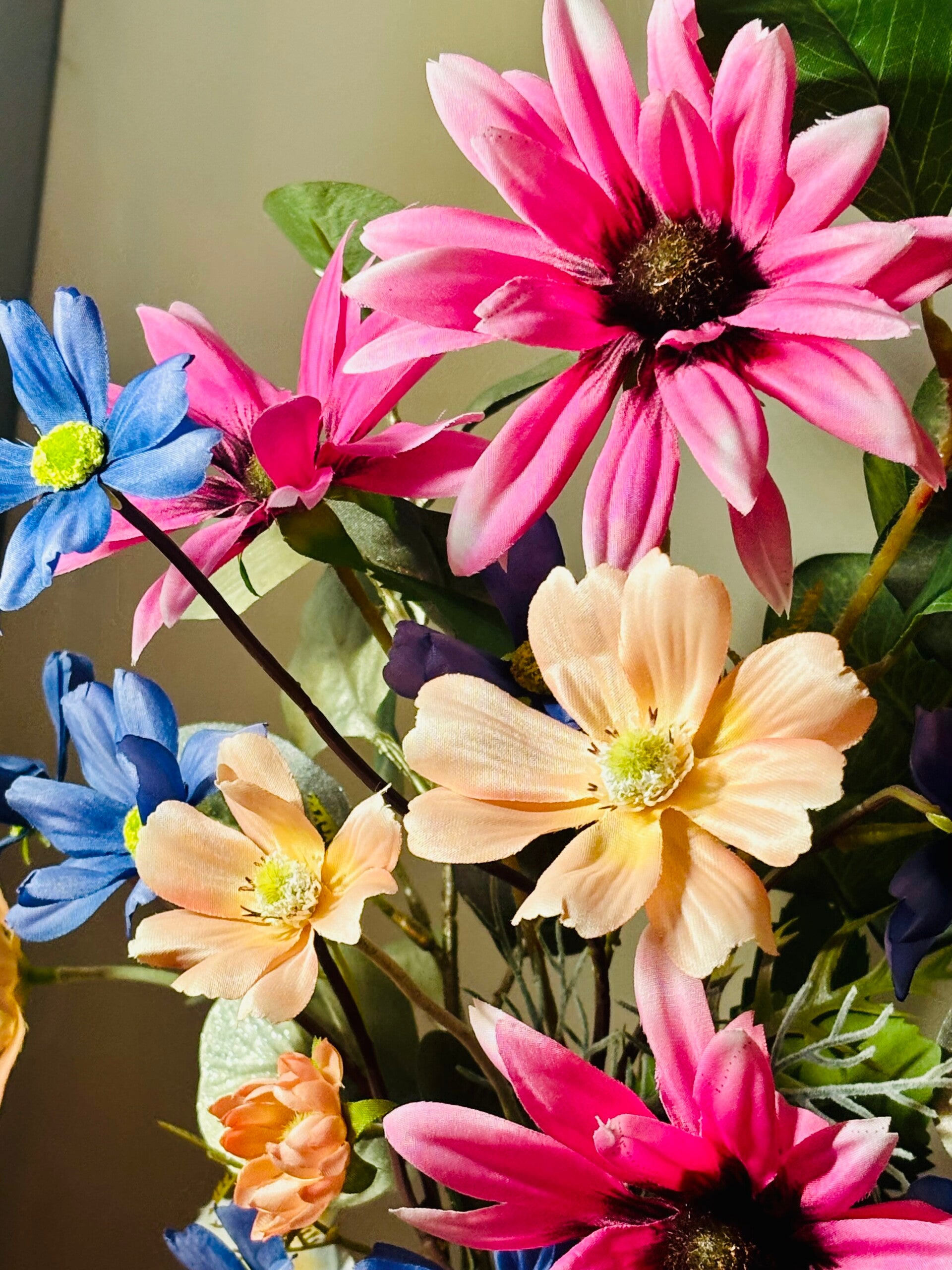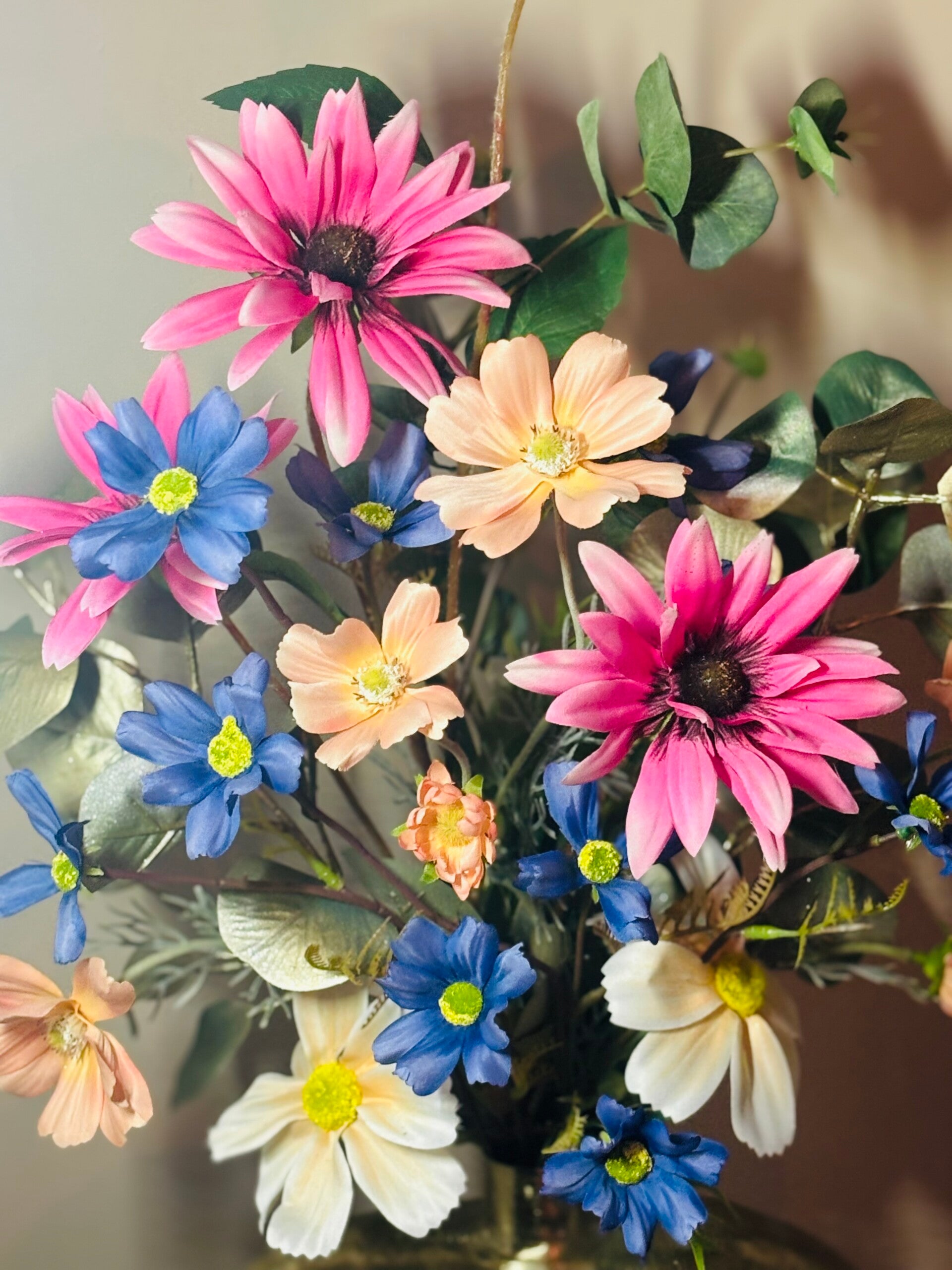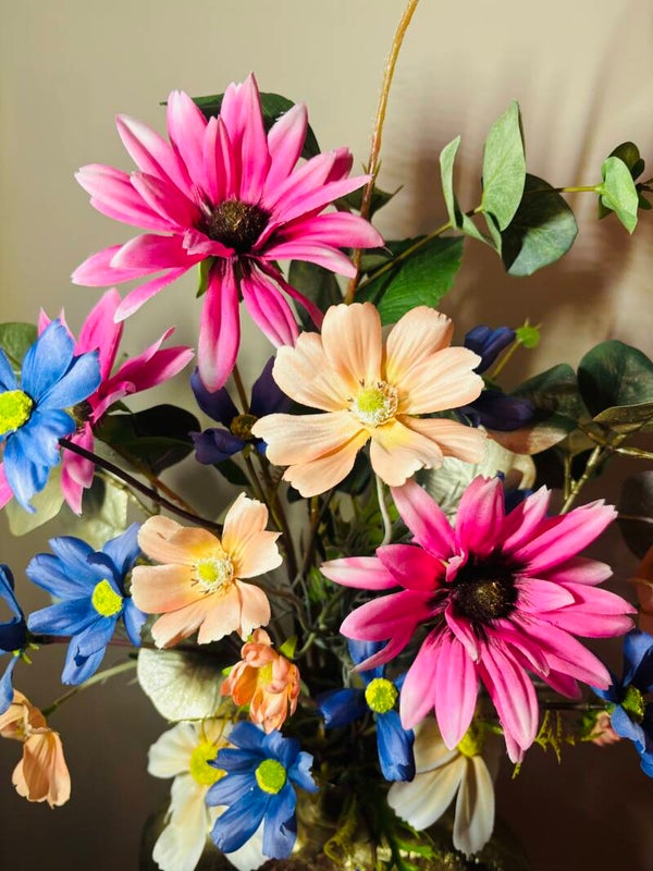 Totale afmeting: 65cm. Hoog ( vaas incl. Boeket)