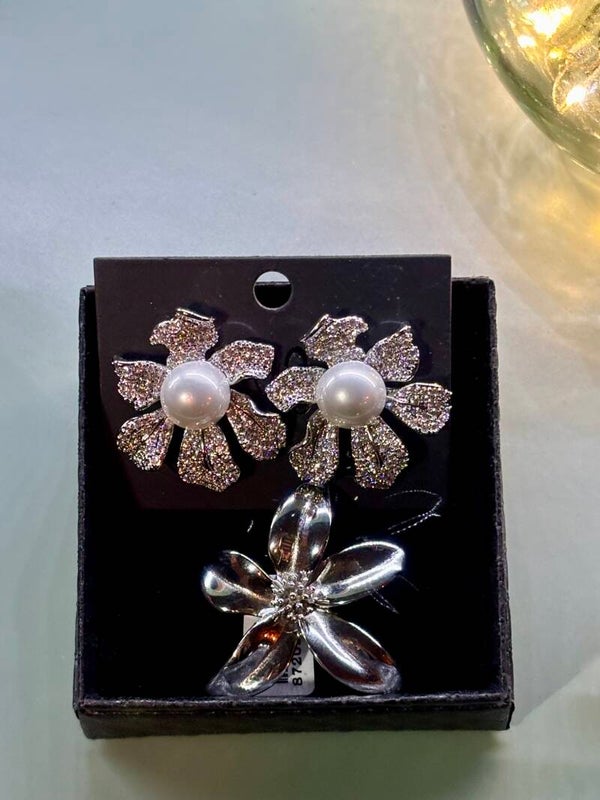 Dit setje bestaat uit: Sparkley Flower Bloem oorbellen met een bijpassende Floral Bloom ring