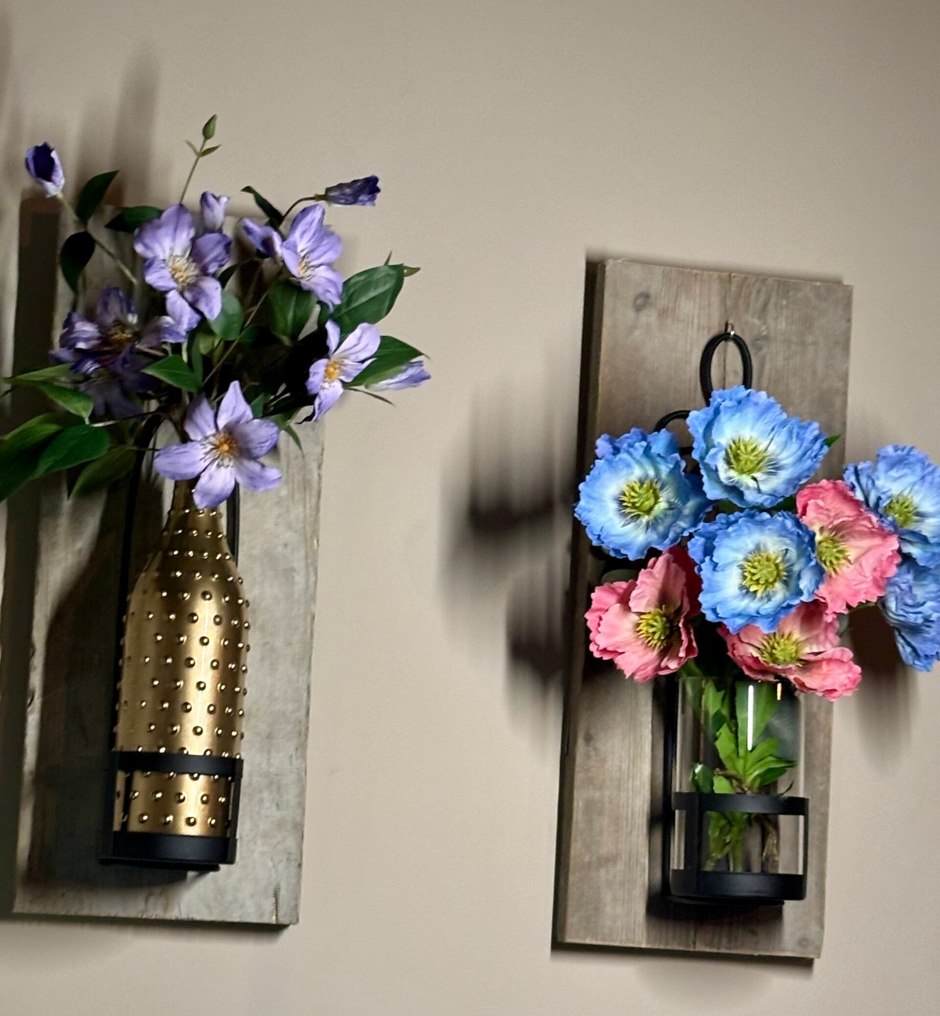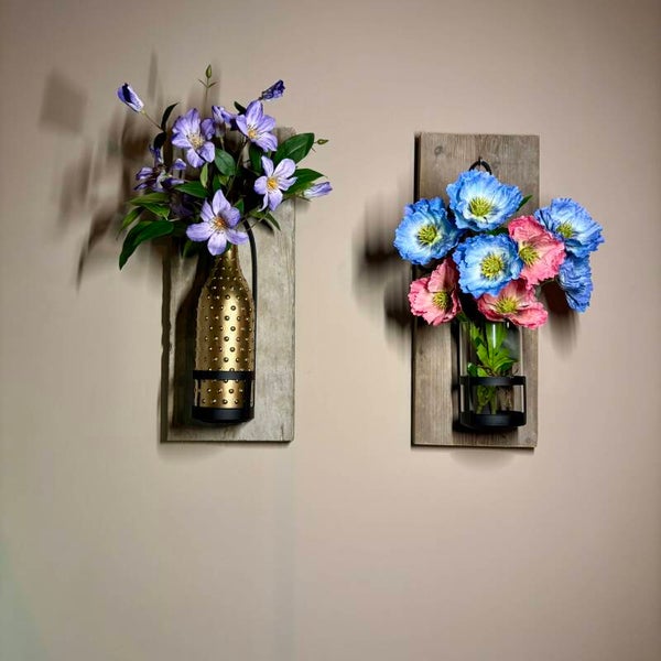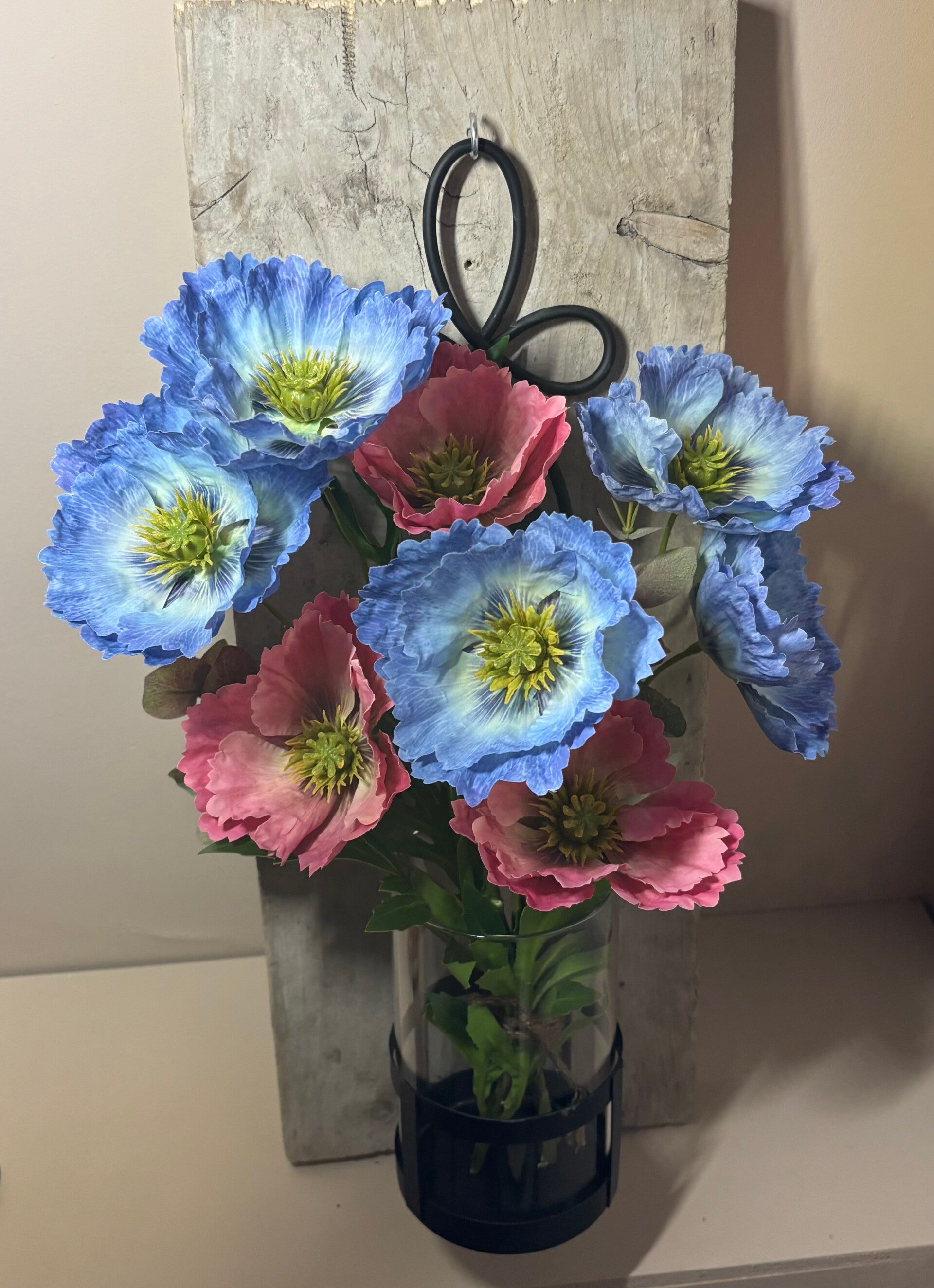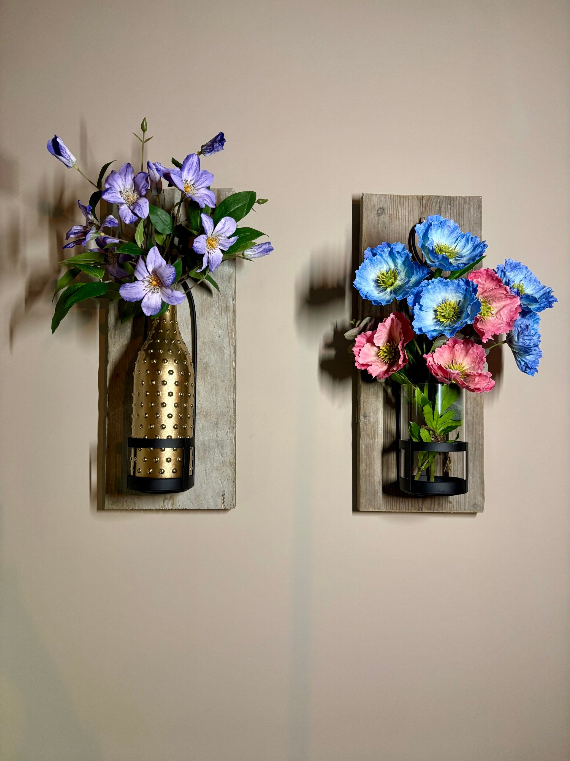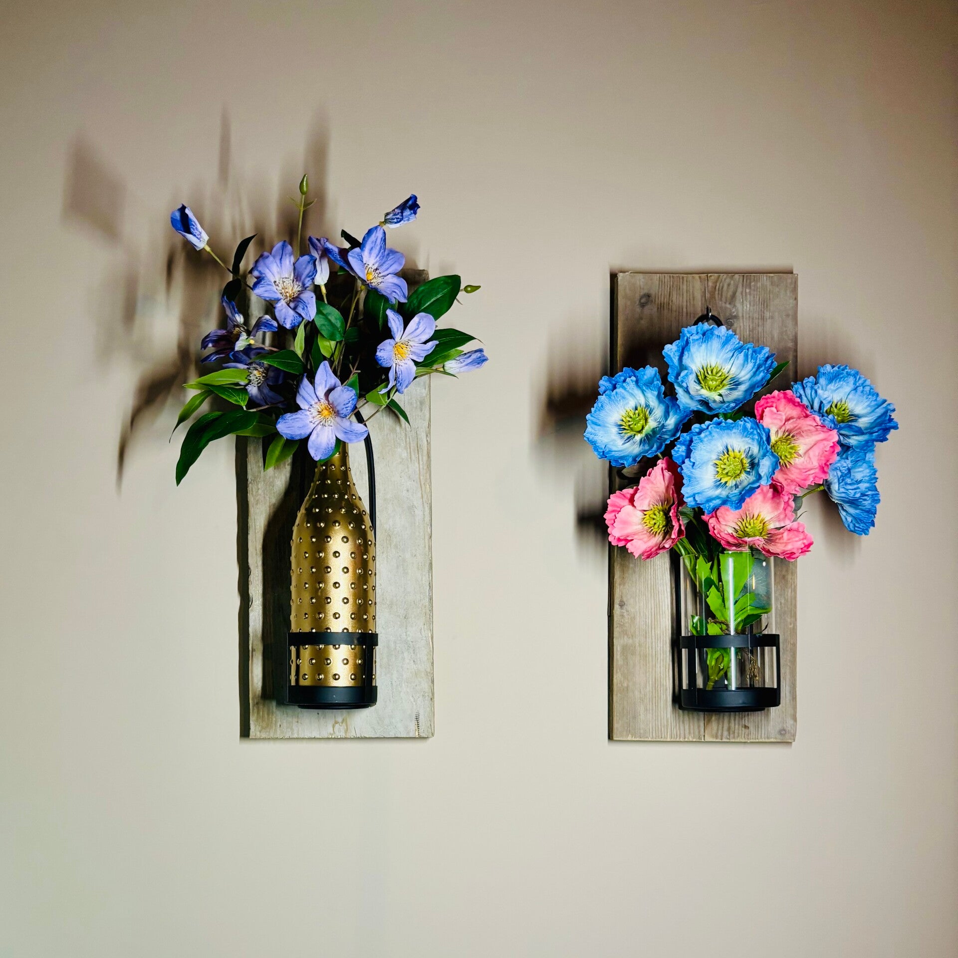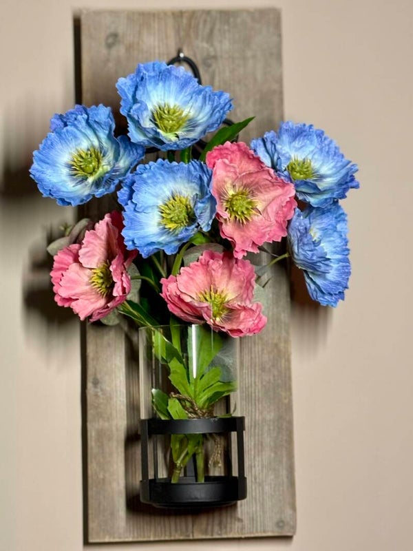Wall of Charm - Pink/Blue / Muur vaas / Wandvaas / boeket op hout