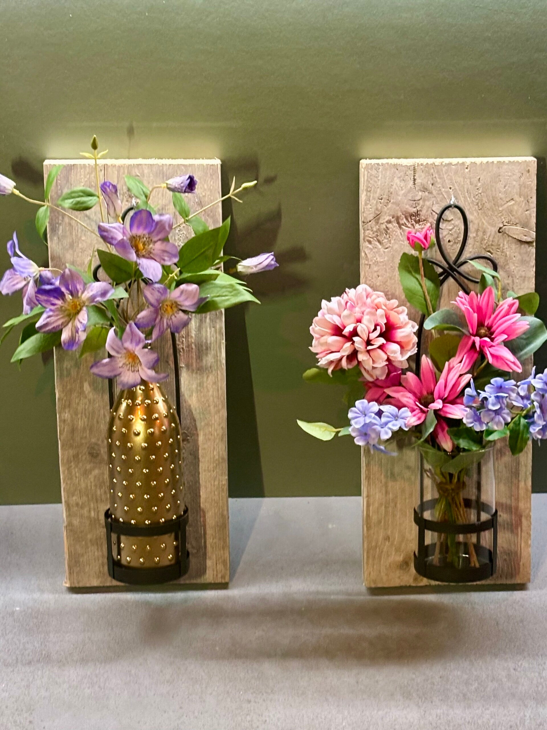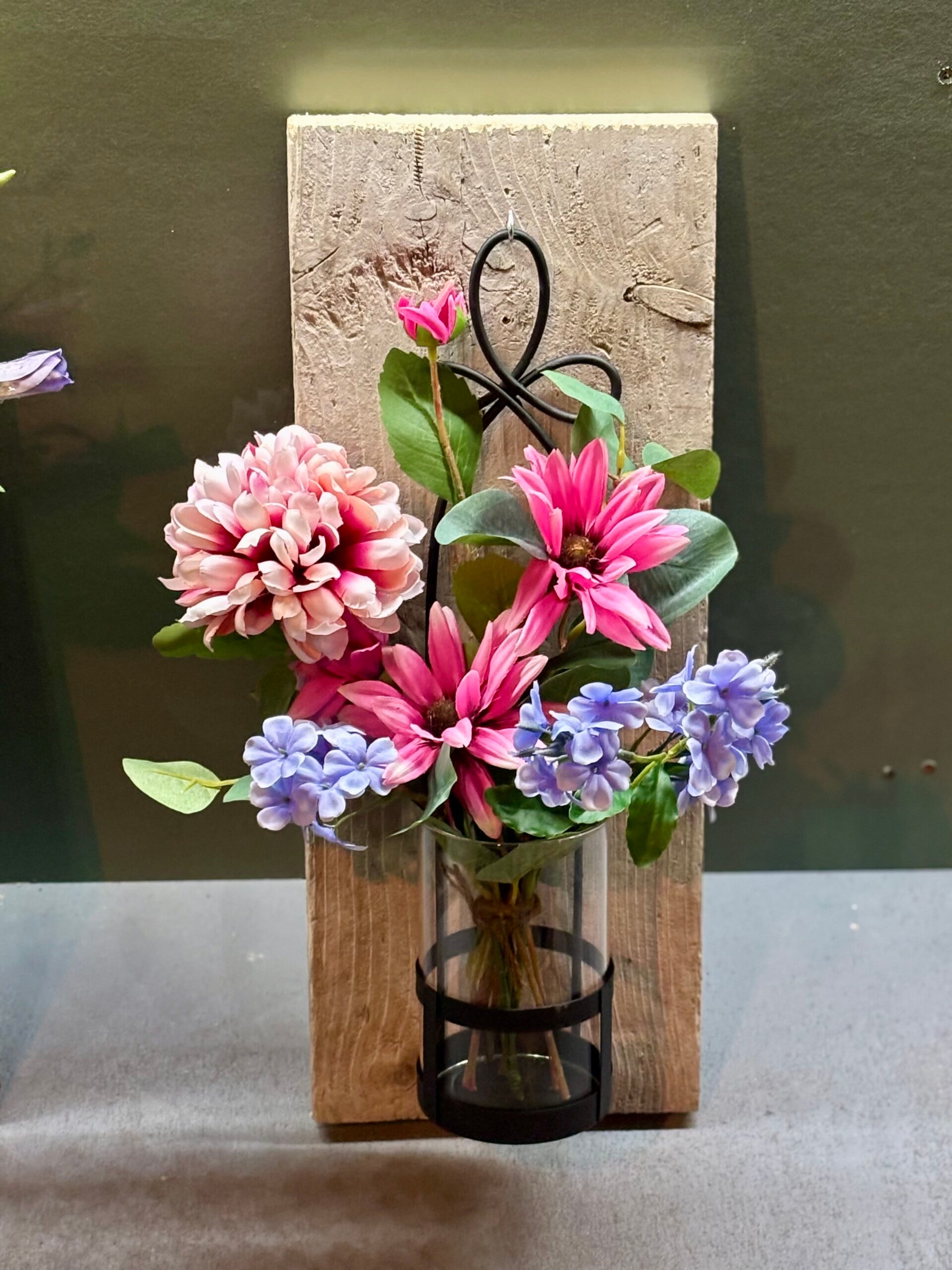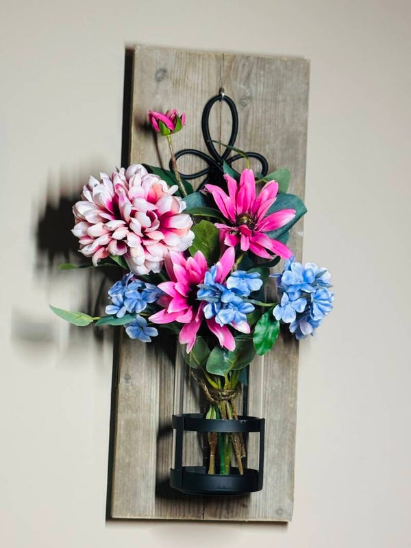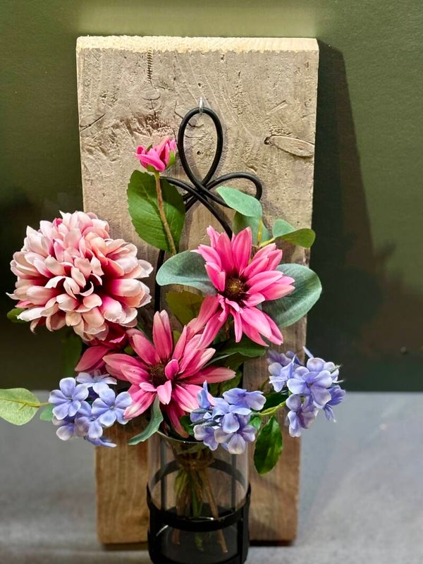 Wall of Charm - Mix Flower / Muur vaas / Wandvaas / boeket op hout