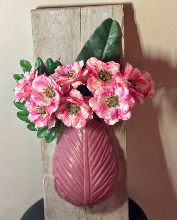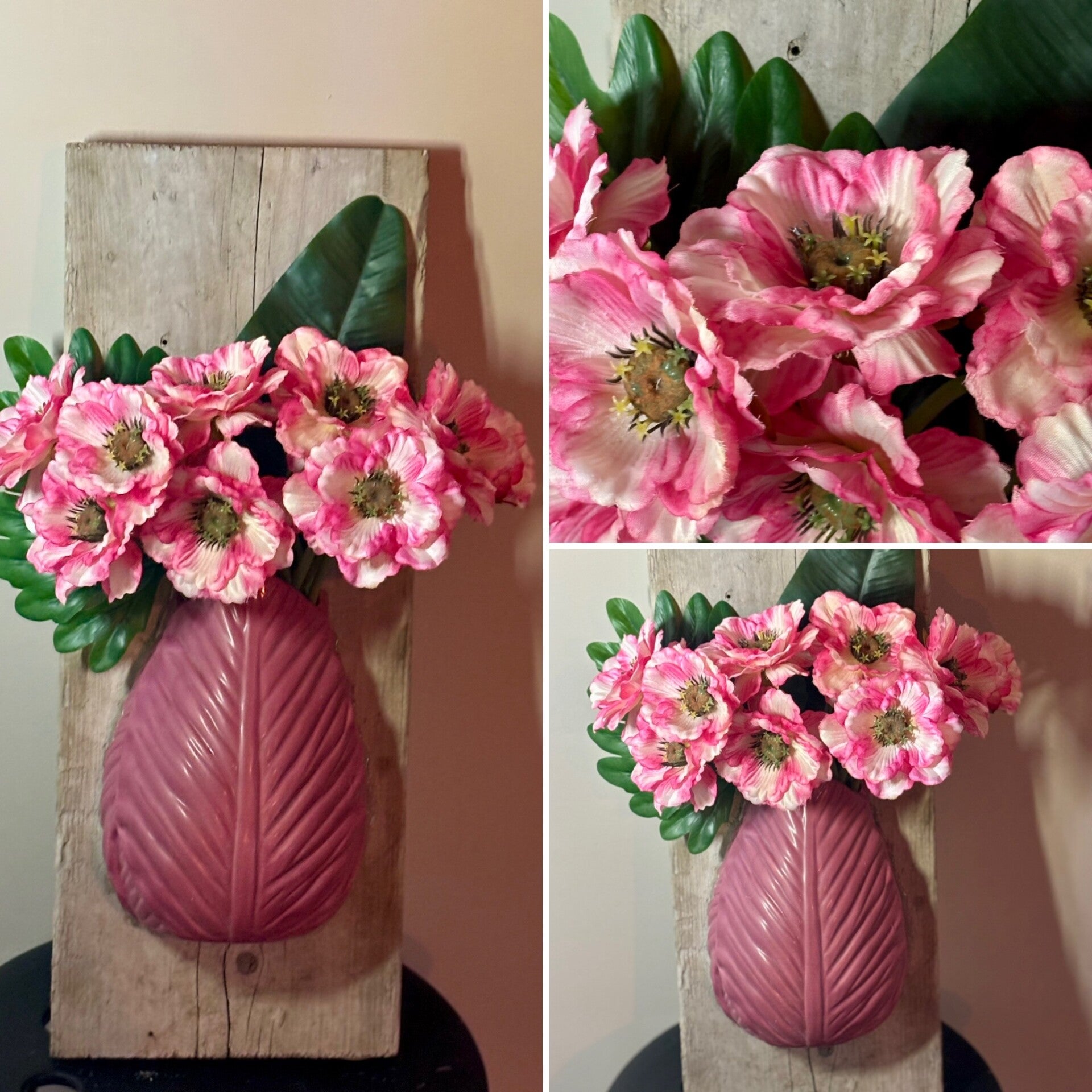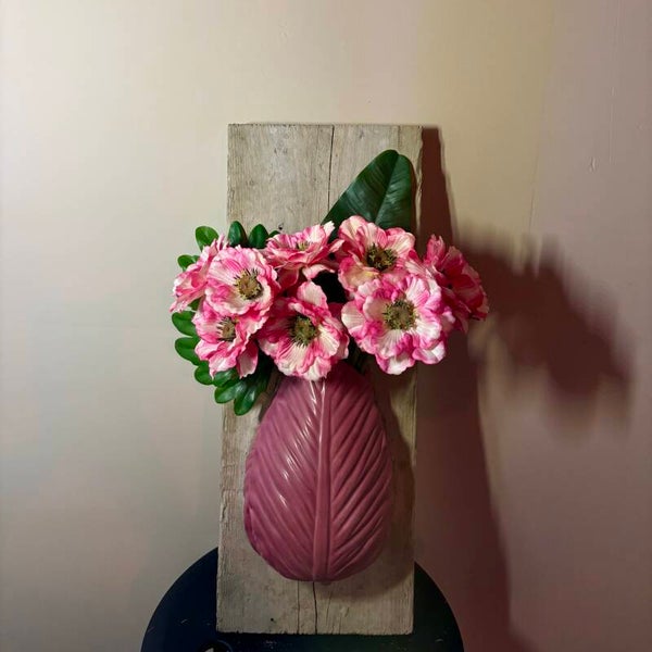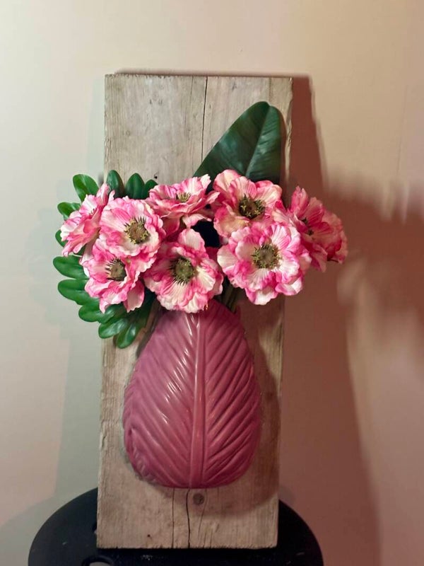 Wall of Charm steigerhouten wandbord met halve vaas en bloemen | pink | discount fashion corner