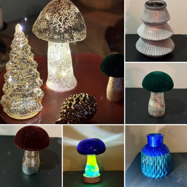Glas paddestoel met een velvet kapje
