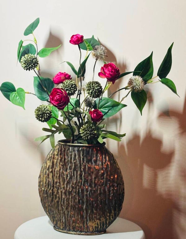 Afmetingen: vaas h21,5Xb21,5 | Totaal incl. boeket: H47cm.