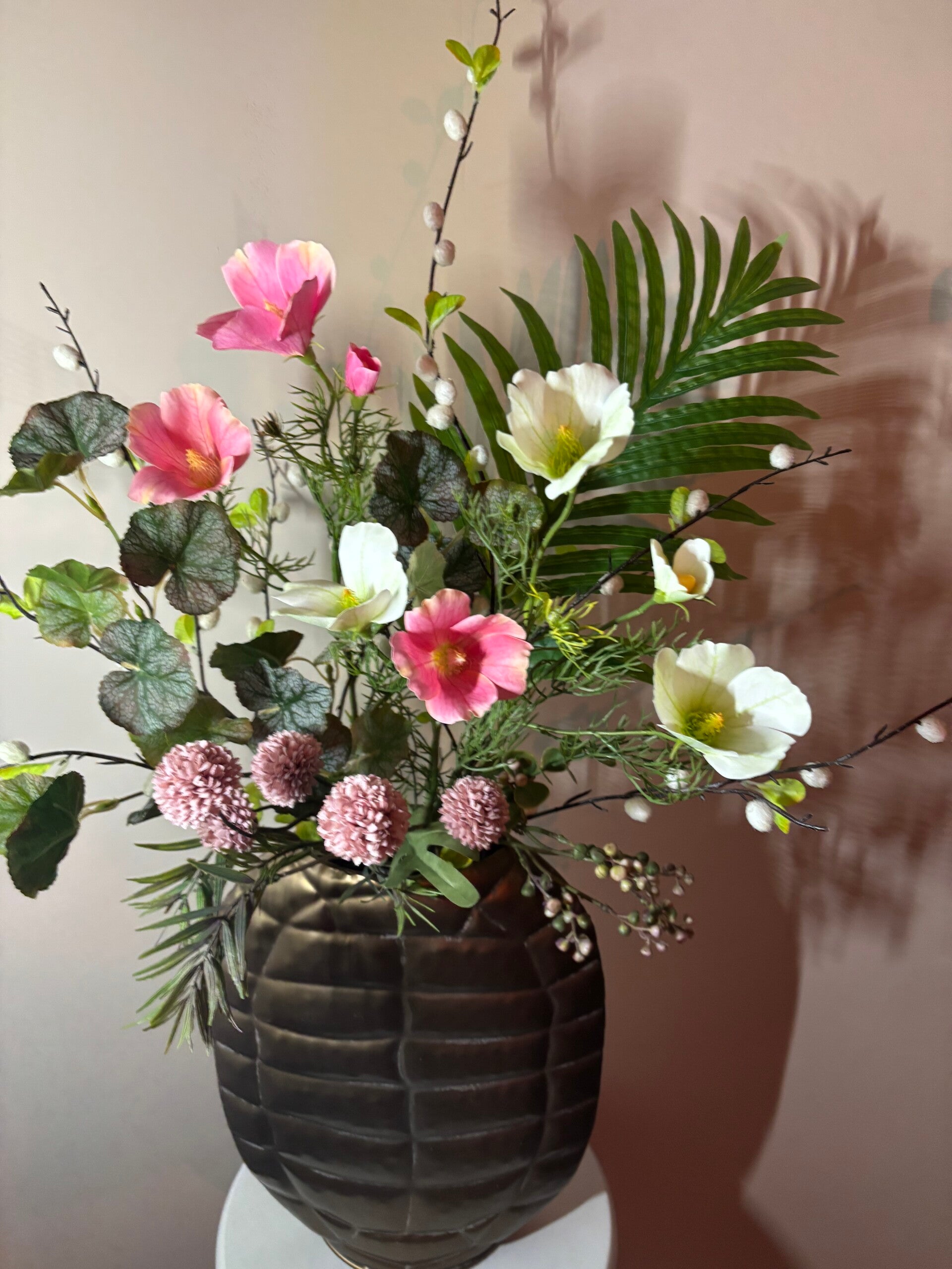 De luxe brons kleurige "Turtle look" vaas geeft het geheel een warme & elagante uitstraling.
