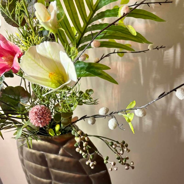 Afmetingen: vaas: h34Xb30 | Totaal incl boeket h85cm.